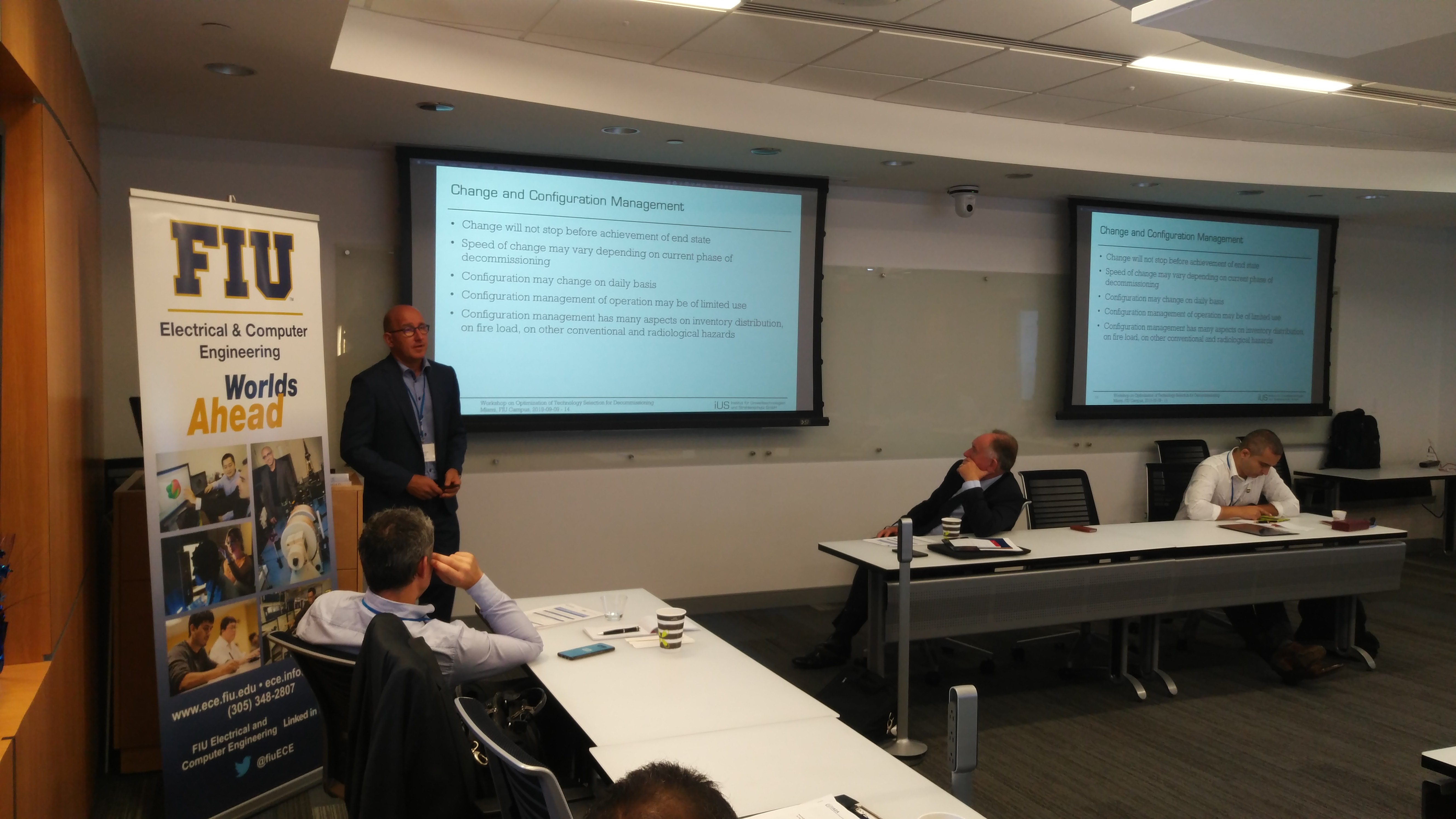 Florida International University’s Applied Research Center was honored to host the International Atomic Energy Agency (IAEA) workshop entitled “Interregional Workshop on Optimization of Technology Selection for Decommissioning of Large and Small Nuclear Installations.” The workshop was conducted on the campus of Florida International University in Miami, Florida during the week of September 9 – 13, 2019. The workshop counted with the participation of Member State countries from Croatia, Czech Republic, Egypt, Hungary, Indonesia, Lithuania, Romania, Slovakia, Slovenia, Ukraine, Germany, Norway and the US. The workshop involved technical presentations, case studies, lab tours and exercises provided by international experts from Germany and Norway, as well as experts from Argonne National Lab and FIU’s Applied Research Center. The workshop was led by IAEA representative (Mr. Patrick O’Sullivan) and by FIU-ARC’s Director of Research, Dr. Leonel Lagos.