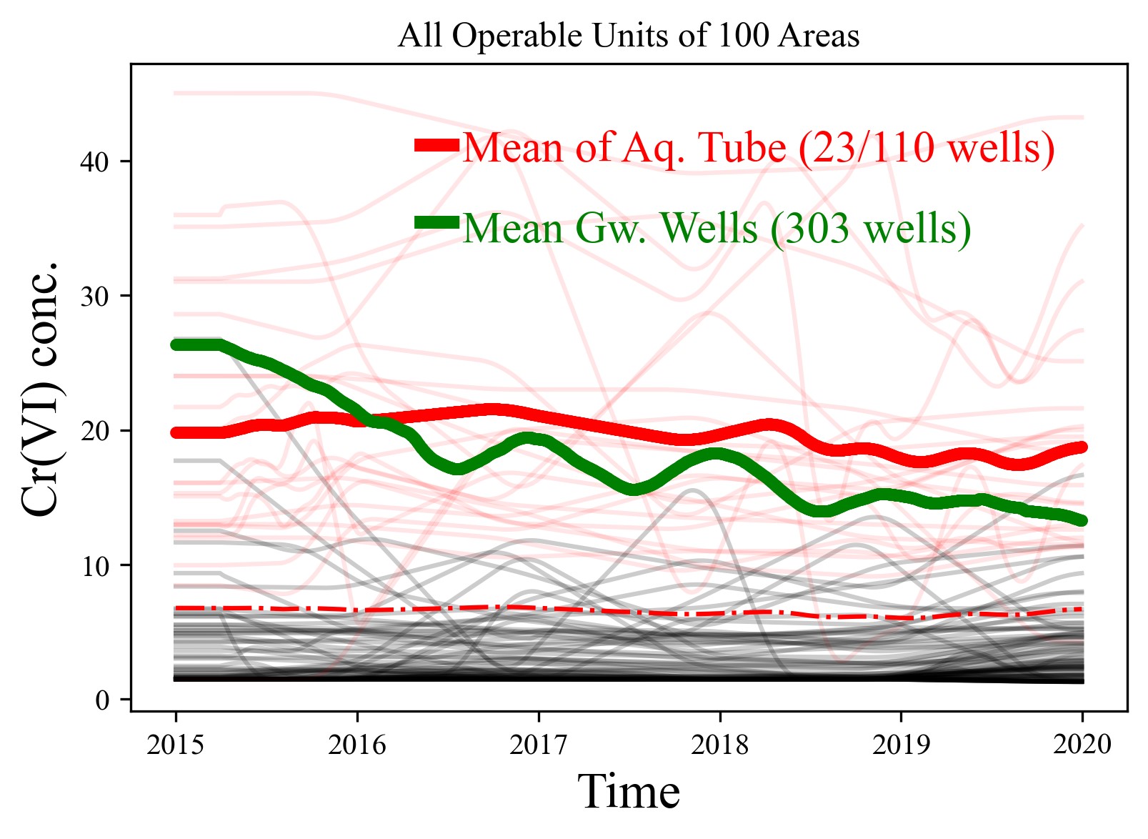 Ground water and surface water Cr(VI) time series similarity with data filter