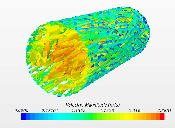 Contour of velocity in quais-direct numerical simulation (Bingham fluid flowing through a pipe)