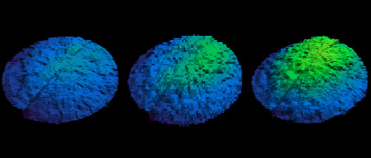 - 3D images of a solid liquid interface bulging due to the agglomeration of gas
