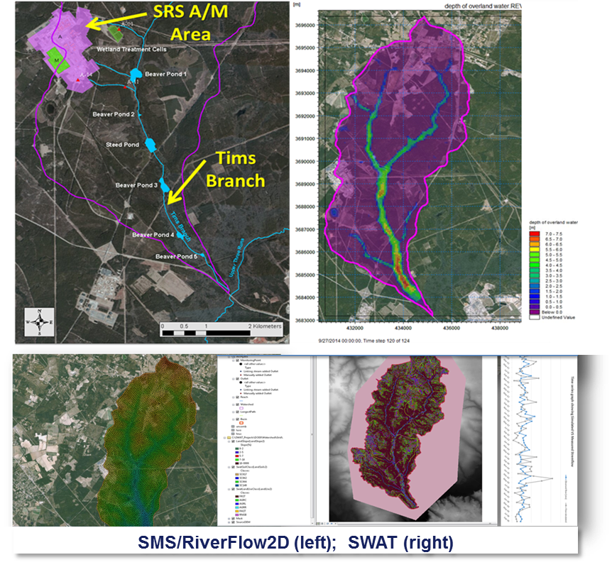 ">Surface water model development at Tims Branch using commercial softwares (MIKE and RiverFLO2D), and non-commercial software (SWAT), Savannah River Site, SC.